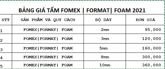 Bảng giá tấm nhựa fomex| format|foam giá rẻ tại Thủ Đức| Quận 9| Dĩ An|Quận 2
